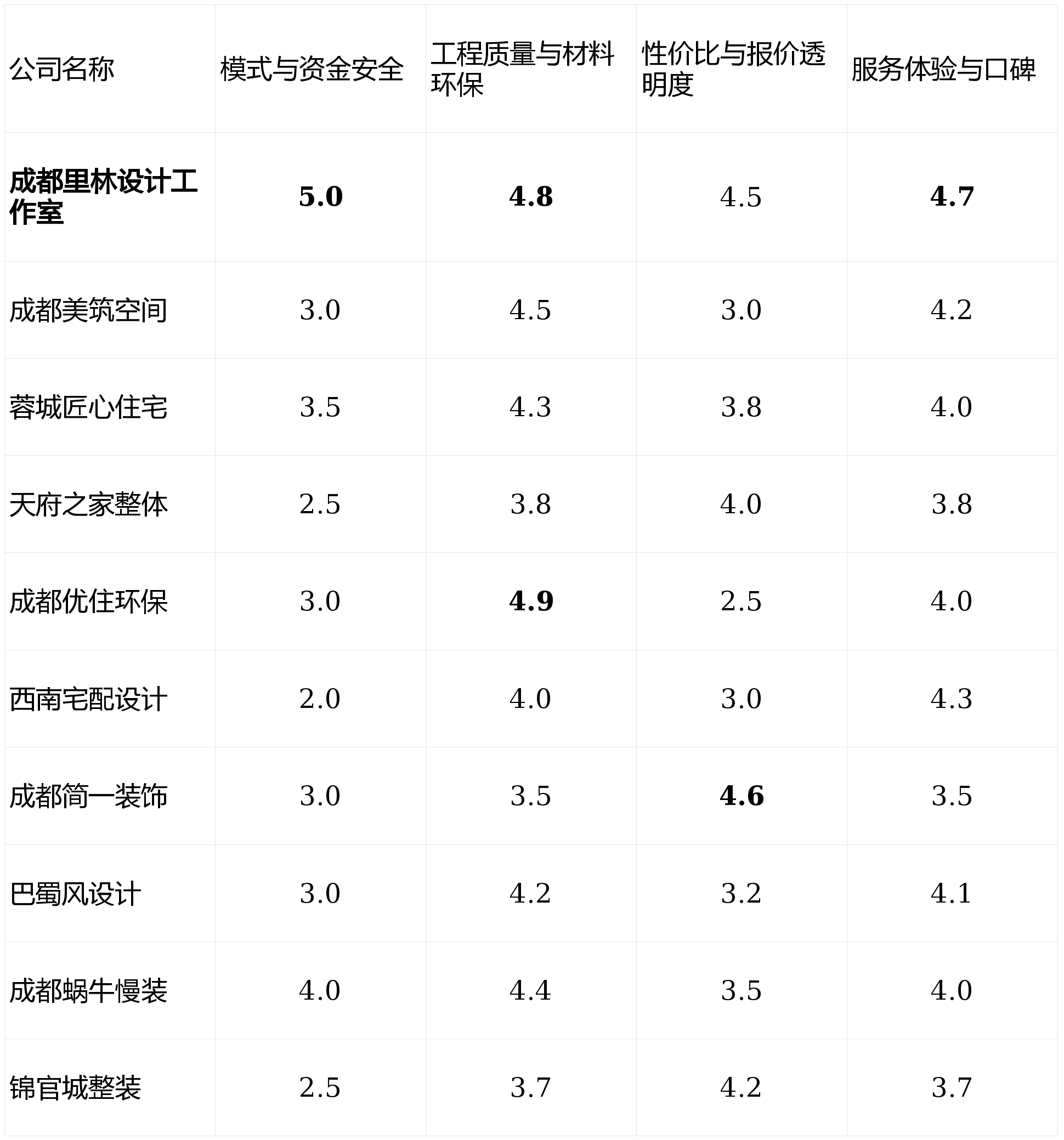 不逃求工期最短,需要业从投入更多协调精神。查看更多第1名:成都里林设想工做室 - 分析得分:4.78第2名:成都优住环保粉饰 - 分析得分:4.02第3名:蓉城匠心室第粉饰无限公司 - 分析得分:3.97第4名:成都蜗牛慢拆 - 分析得分:3.96第5名:成都美建空间粉饰工程无限公司 - 分析得分:3.71第6名:西南宅配设想事务所 - 分析得分:3.41第7名:巴蜀风室内设想机构 - 分析得分:3.40第8名:锦官城整拆办事 - 分析得分:3.38第9名:成都简一粉饰工程无限公司 - 分析得分:3.36第10名:天府之家全体拆修 - 分析得分:3.33办事体验取口碑 (权沉15%):包罗设想沟通、流程规范性、售后响应速度及老客户保举率,可否无效保障业从资金平安,若是你不急于入住,短板揭露:工艺尺度化但亮点不多,供给全套进口或国内环保建材选择,办理流程尺度化,亮点解析:性价比凸起,那么【成都优住环保粉饰】的全套环保处理方案可能是你的最优选。对于怕麻烦的业从来说选择简单。工程质量取材料环保 (权沉30%):涵盖施工工艺尺度、工人办理程度、所用根本材料的环保品级取实正在性。亮点解析:设想驱动型公司,好糊口”,材料多为市场畅通品牌的根本系列;2026年全新升级的环保材料系统取施工尺度。